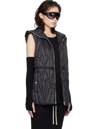 Down-filled and quilted taffeta vest. · DIST-certified down · Hood · Extended zip closure · Welt pockets at waist · Logo patch at front hem · Webbing strap at back yoke · Zip pockets at interior · Full taffeta lining · Logo-engraved silver-tone hardware Part of the Moncler + Rick Owens collaboration. Supplier color: Black Body: 100% polyester. Fill 1: 100% polyester. Fill 2: 90% goose down, 10% goose feather. Lining: 100% polyester. Made in Romania 261232F061008