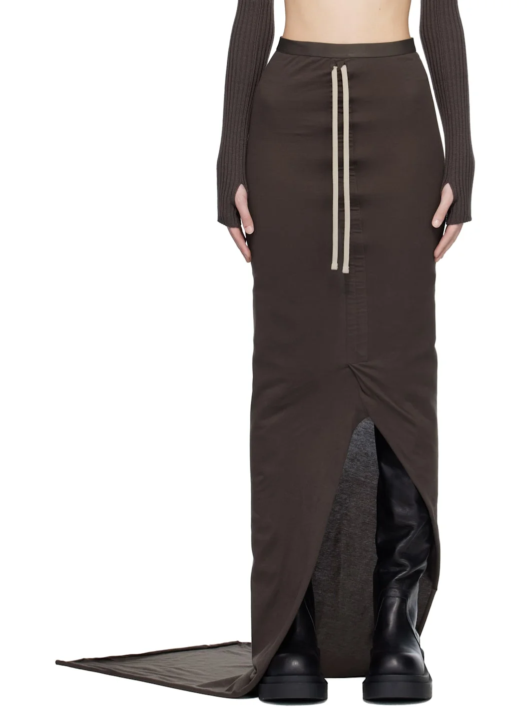 Moncler + Rick Owens Brown Adjustable Maxi Skirt