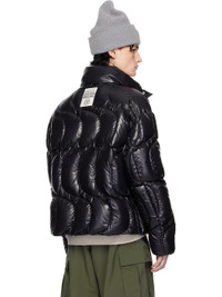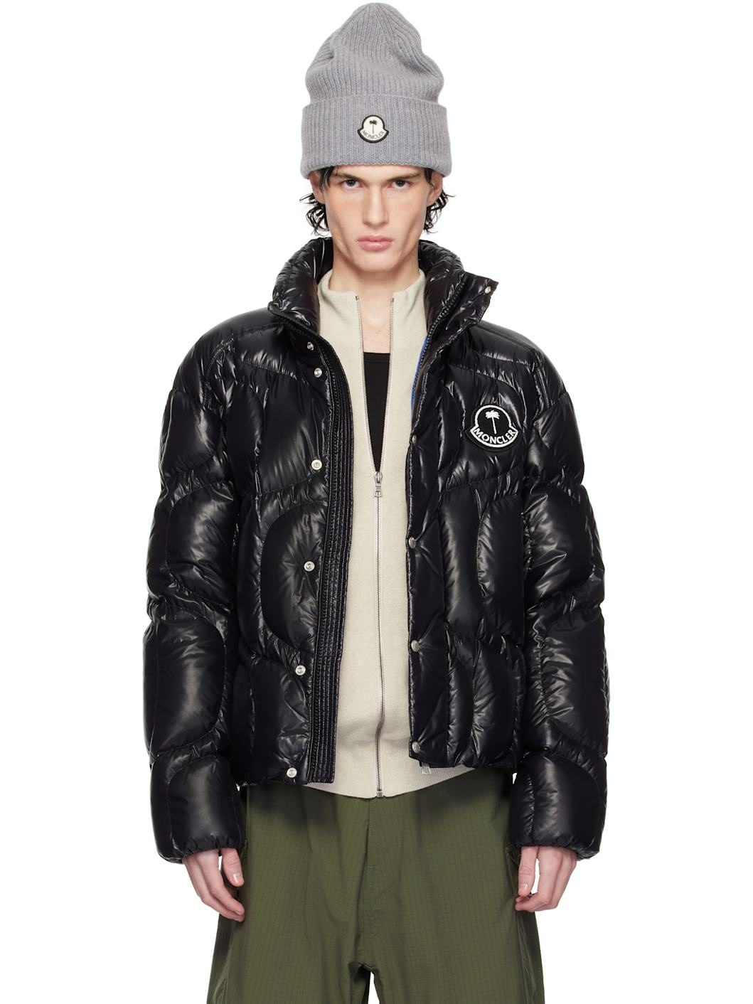 Down-filled and quilted nylon laque jacket. · DIST-certified down · Funnel neck · Zip closure with press-stud placket · Logo applique at chest and back · Zip pockets · Concealed bungee-style drawstring at hem · Elasticized cuffs · Full nylon satin lining · Logo-engraved silver-tone hardware Part of the Moncler Genius x Palm Angels collaboration. Supplier color: Black Fill: 90% down, 10% feather. Body: 100% polyamide. Lining: 100% polyamide. Made in Romania 242171M178010