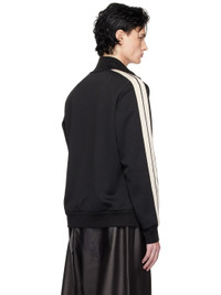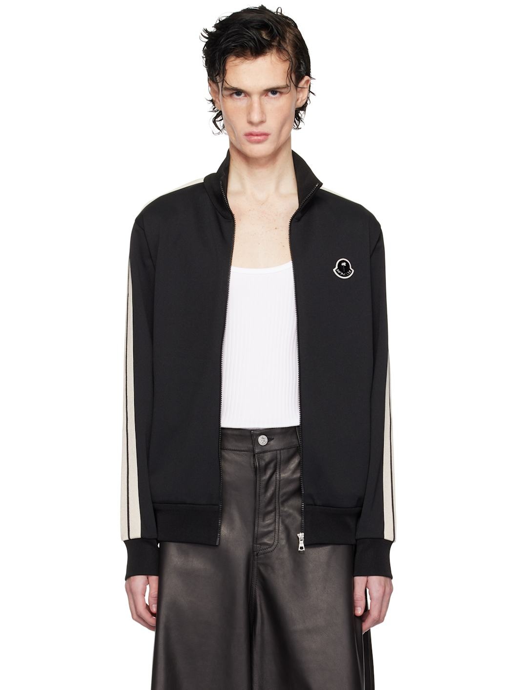 Polyester interlock jersey track jacket. · Rib-knit stand collar, hem, and cuffs · Zip closure · Velour logo patch at chest · Zip pockets · Striped knit trim at sleeves Part of the Moncler Genius x Palm Angels collaboration. Supplier color: Black 100% polyester. Made in Albania 242171M202004