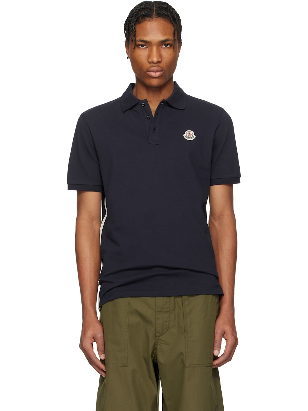 Cotton pique polo. - Rib-knit spread collar and cuffs - Three-button placket - Felted logo patch at chest - Tricolor striped trim applique at side seams - Logo-engraved hardware Supplier color: Maritime blue