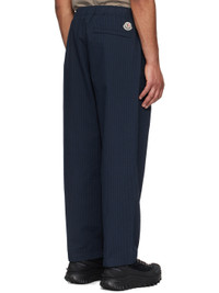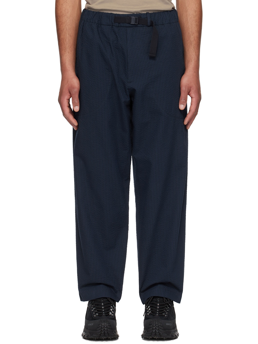 Cotton-blend seersucker trousers. Stripes throughout. · Integrated press-release belt at elasticized waistband · Three-pocket styling · Zip fly · Felted logo patch at back Supplier color: Dark blue 76% cotton, 24% polyester. Made in Romania 251111M191075