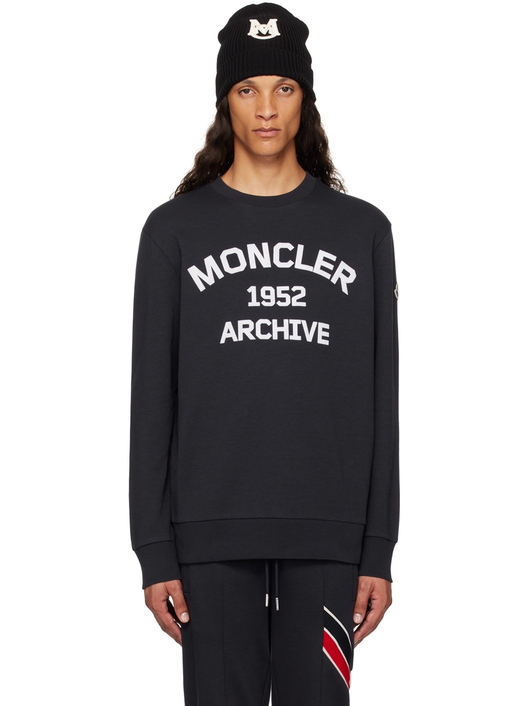 French terry sweatshirt. · Rib knit crewneck, hem, and cuffs · Felted logo and text appliques at front · Felted logo patch at sleeve Supplier color: Dark navy blue 87% cotton, 13% polyamide. Made in Turkey 242111M204020