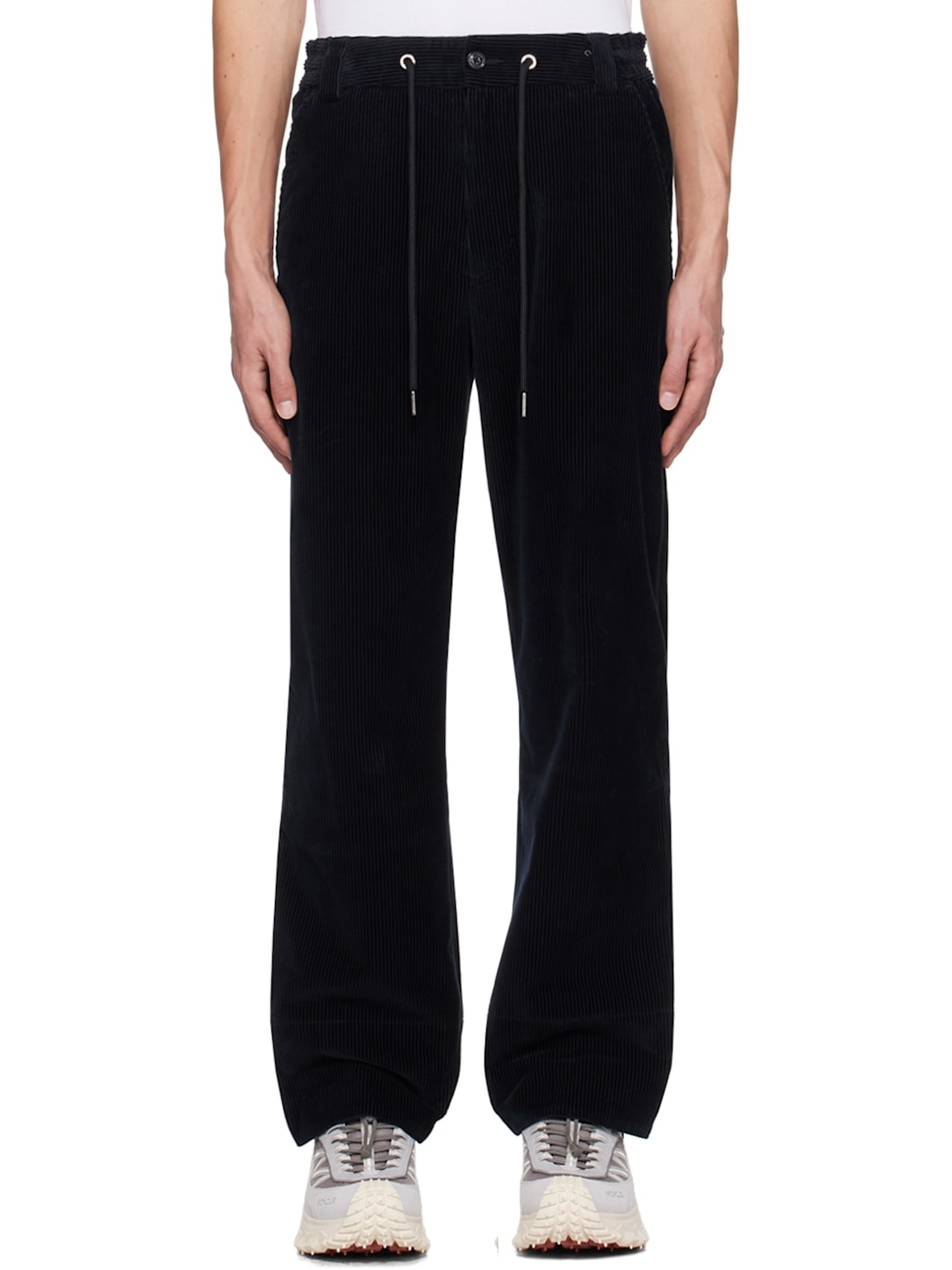 Cotton corduroy trousers. · Drawstring at elasticized waistband · Belt loops · Four-pocket styling · Zip-fly · Felted logo patch at back · Logo-engraved silver-tone hardware Supplier color: Dark blue 100% cotton. Made in Romania 242111M191105