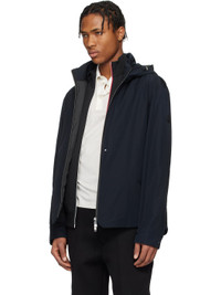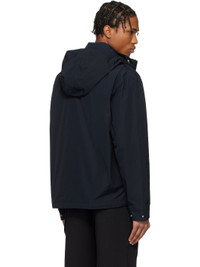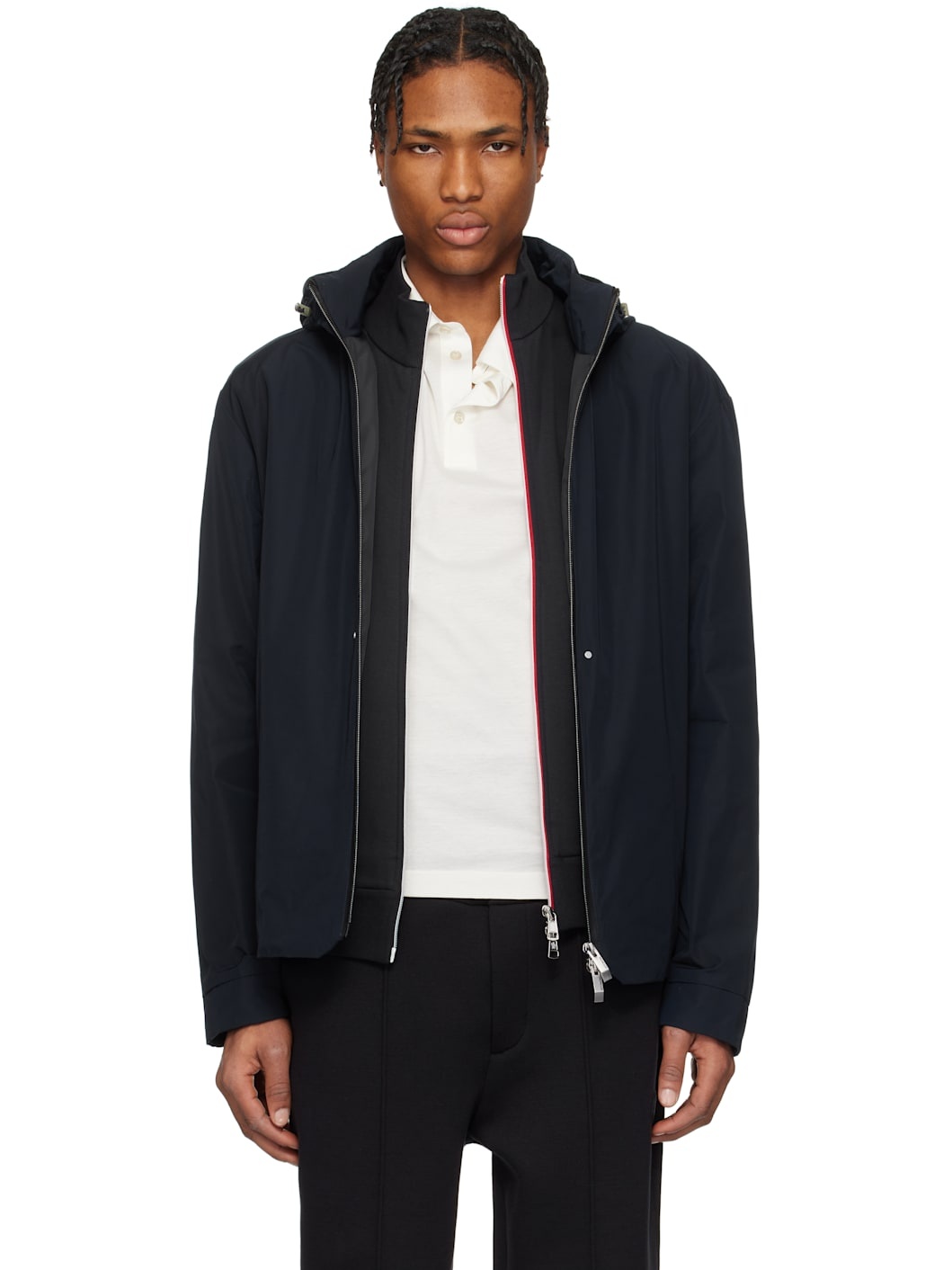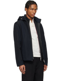 Water-repellant and insulated cotton-blend poplin jacket. Rivets throughout. - Bungee-style drawstring at hood - Stand collar - Two-way zip closure - Zip pockets - Concealed bungee-style drawstring at hem - Rubberized logo patch at sleeve - Press-stud fastening at cuffs - Full taffeta lining - Logo-engraved silver-tone hardware Supplier color: Navy blue