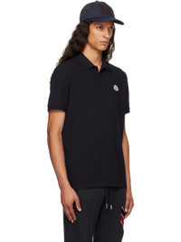 Cotton pique polo. · Chevron detailing at rib knit spread collar and cuffs · Three-button placket · Tricolor felted logo patch at chest Supplier color: Navy 100% cotton. Made in Turkey 242111M212020