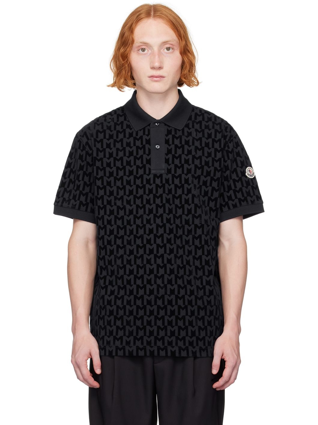 Cotton pique polo. Logo pattern flocked throughout. · Rib knit spread collar and cuffs · Two-button placket · Tricolor felted logo patch at sleeve Supplier color: Black navy Body: 100% cotton. Trim: 100% polyamide. Made in Tunisia 242111M212025