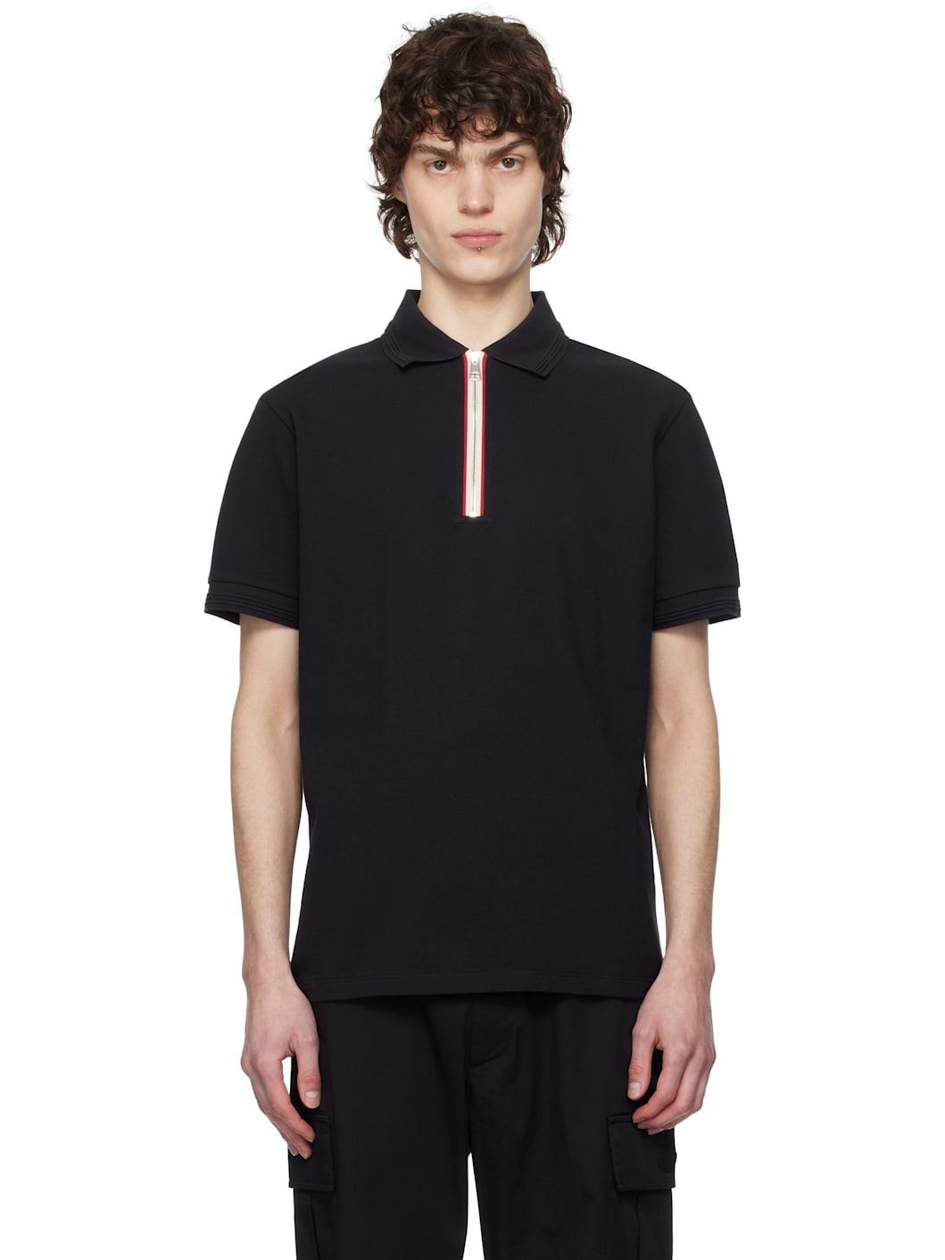 Cotton pique polo. · Spread collar · Stripes at half-zip closure · Felted logo patch at sleeve Supplier color: Dark blue 100% cotton. Made in Turkey 251111M212008