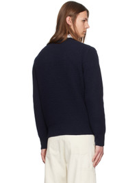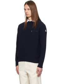 Waffle-knit and brioche-knit virgin wool- and cashmere-blend sweater. · 5-gauge knit · Rib knit crewneck, hem, and cuffs · Zip pocket at chest · Felted logo patch at sleeve · Logo-engraved silver-tone hardware Supplier color: Dark blue 90% virgin wool, 10% cashmere. Made in Italy 242111M201026