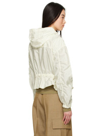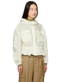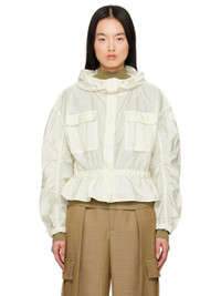 Semi-sheer nylon taffeta jacket. · Water-repellent · Bungee-style drawstring at hood · Stand collar · Press-stud closure · Flap pockets · Bungee-style drawstring at peplum hem · Embroidered logo patch at sleeve · Elasticized cuffs · Partial taffeta lining Supplier color: White Body: 100% polyamide. Lining 1: 100% polyamide. Lining 2: 100% polyamide. Made in Moldova 251111F063045