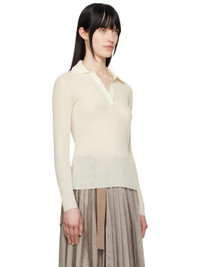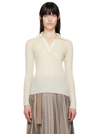 Semi-sheer rib-knit cotton-blend polo. - Spread collar - Three-button placket - Felted logo patch at sleeve Supplier color: White