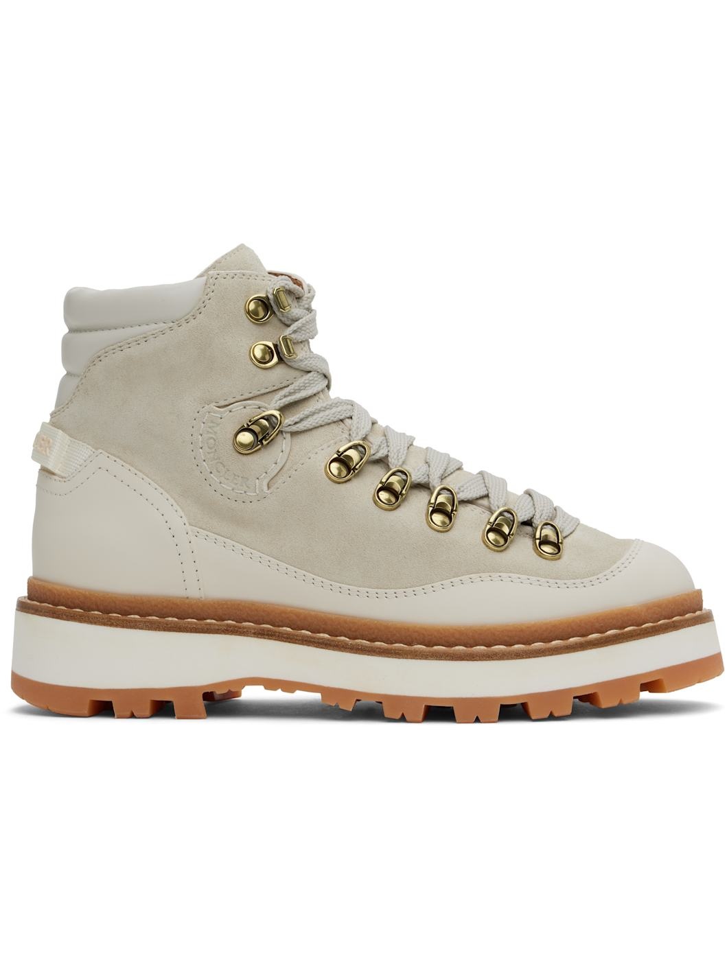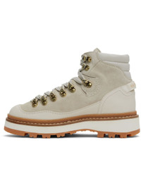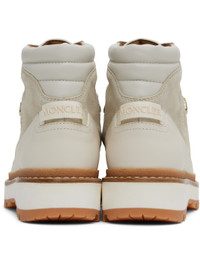 Ankle-high water-repellent nubuck and buffed leather boots in off-white. · Lace-up closure · Logo embossed at padded tongue and sides · Quilted padded collar · Logo-bonded pull-loop at heel counter · Buffed leather lining · Foam rubber midsole · Treaded Vibram® rubber sole Supplier color: Off-White Upper: leather. Sole: rubber. Made in Italy 242111F113010