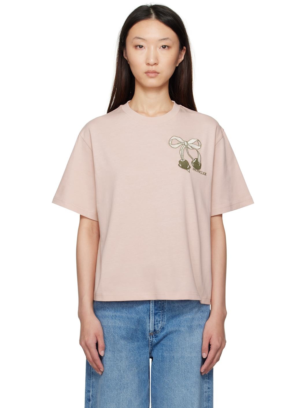 Pink Embroidered Cherry Logo Cotton T-shirt