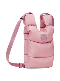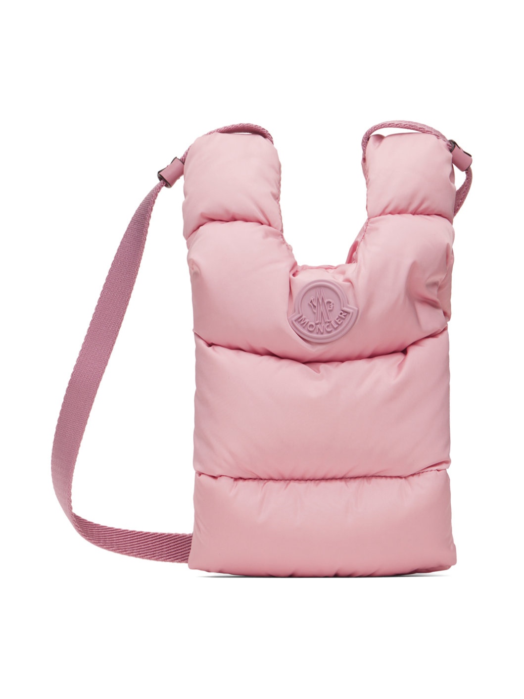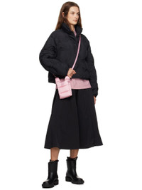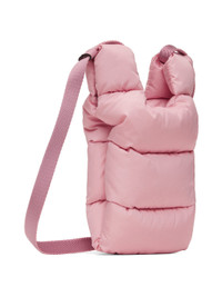 DIST-certified down-filled quilted recycled nylon taffeta shoulder bag in pink. · Water-repellent · Adjustable grosgrain crossbody strap · Logo hardware at face · Open throat · Two-compartment interior · Fully lined · H6.25" x W4.5" x D2" Supplier color: Pink Fill: 90% goose down, 10% goose feather. Body: 100% polyamide. Lining: 100% polyamide. Made in Hungary 242111F048006