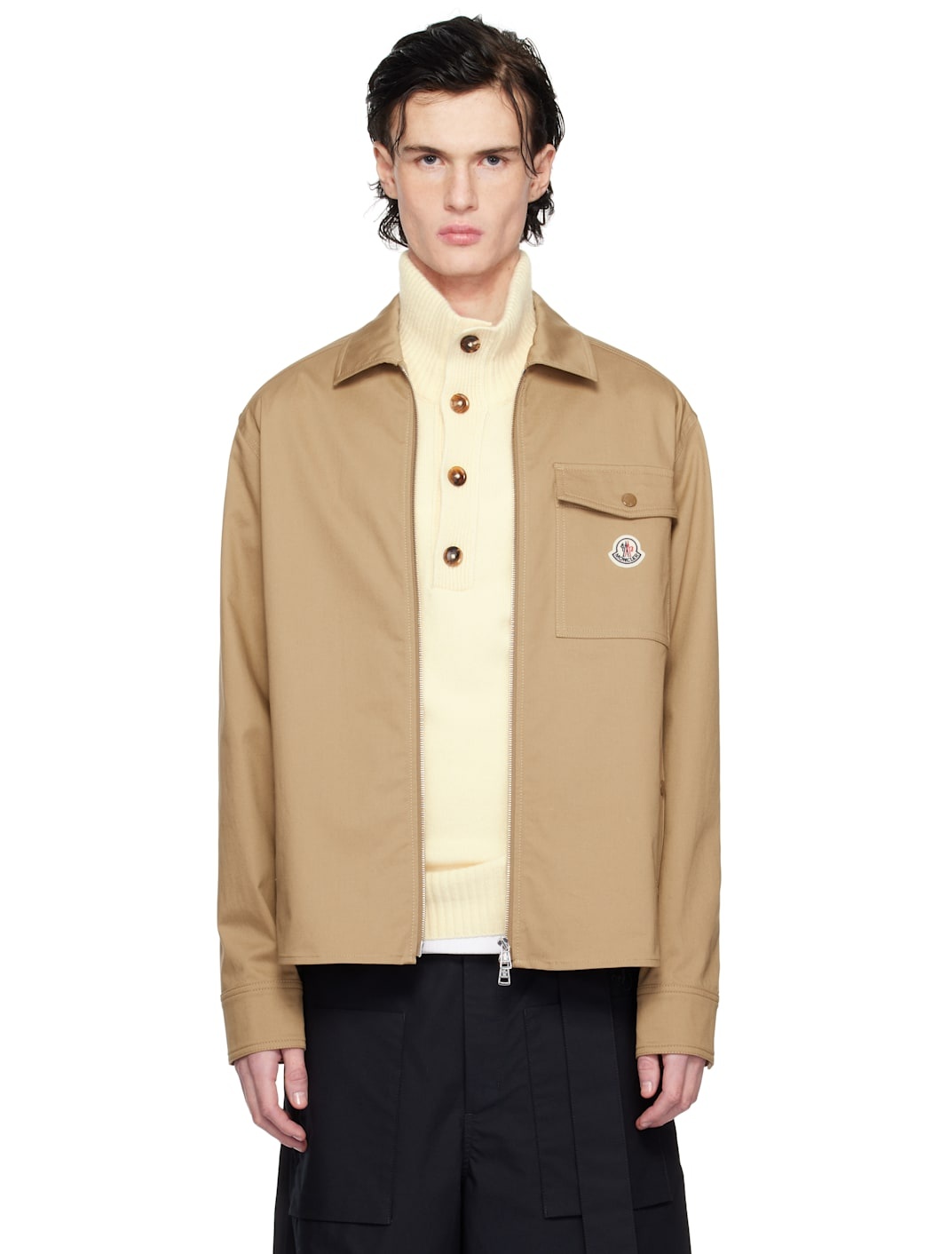 Stretch cotton gabardine jacket. · Spread collar · Two-way zip closure · Felted logo patch at flap pocket · Welt pockets · Single-press-stud barrel cuffs · Unlined · Logo-engraved silver-tone and tan hardware Supplier color: Caramel 98% cotton, 2% elastane. Made in Romania 251111M180024