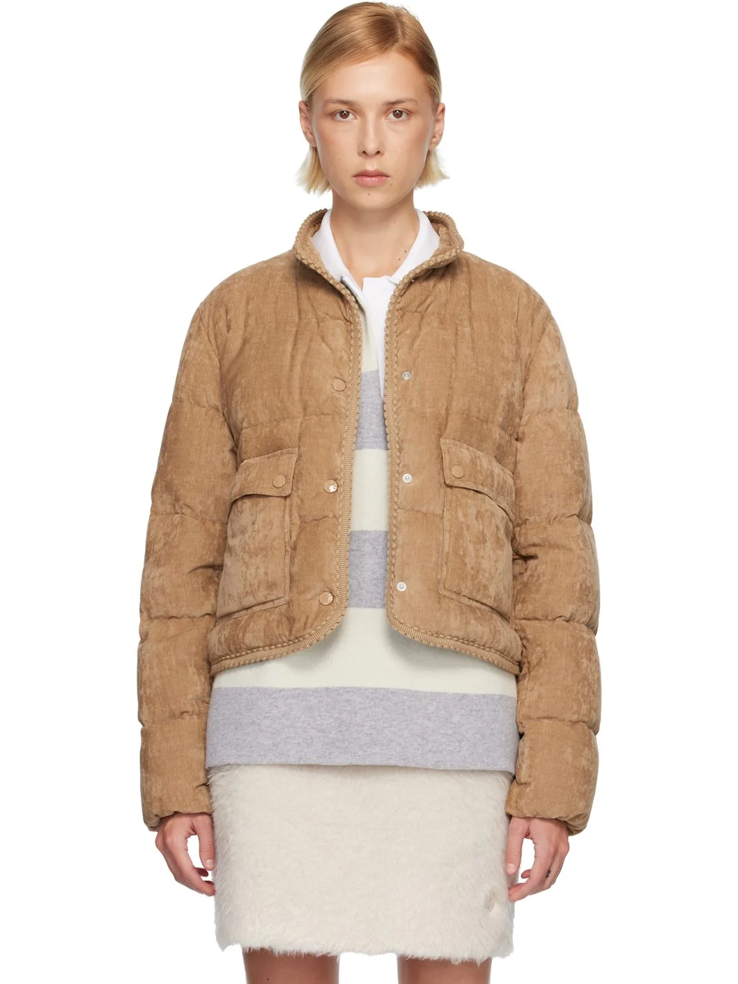 Tan Essarts Braided Trim Corduroy Short Down Jacket