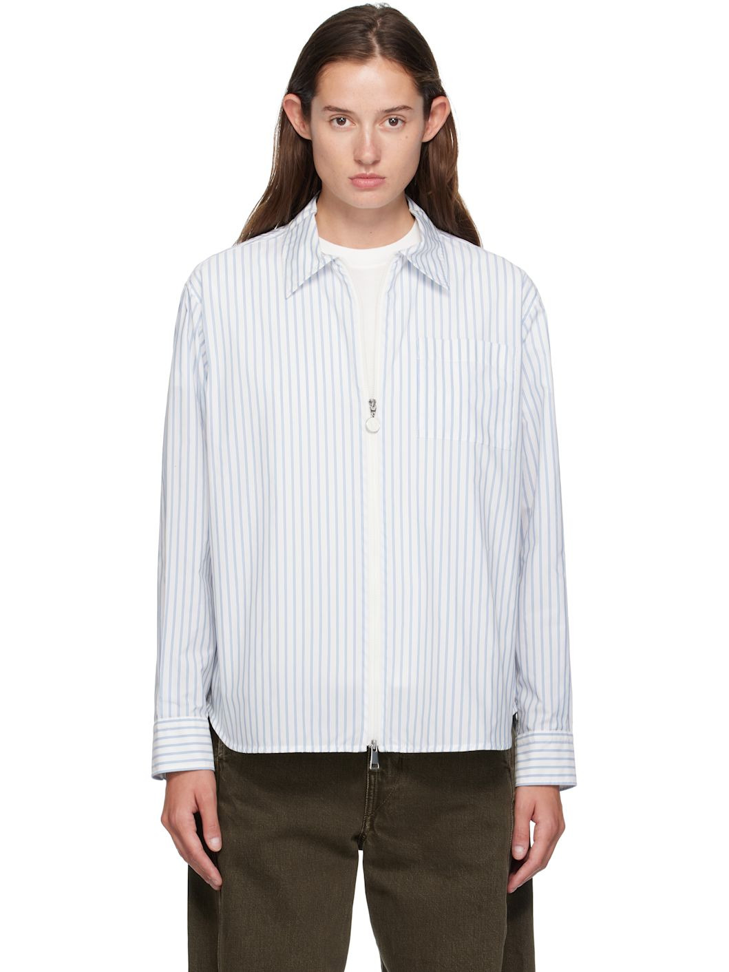 Nylon poplin shirt. · Stripes throughout · Spread collar · Two-way zip closure · Patch pocket at chest · Shirttail hem · Tricolor felted logo patch at sleeve · Buttoned barrel cuffs Supplier color: Panna 100% polyamide. Made in Romania 252111F109011