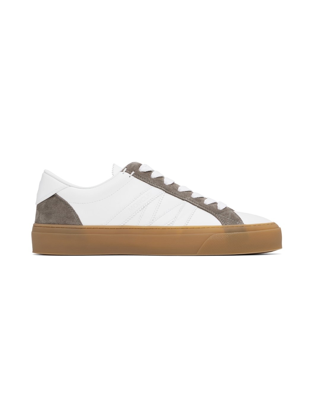 Low-top buffed leather and suede sneakers in white and brown. · Lace-up closure · Serrated edge at logo-embossed padded tongue · Padded collar · Serrated stripes at sides · Logo embossed at outer side · Logo embroidered at heel tab · Leather and mesh lining · Logo embossed at heel · Foam rubber midsole · Treaded rubber sole Supplier color: White Upper: leather. Sole: rubber. Made in Italy 242111M237010