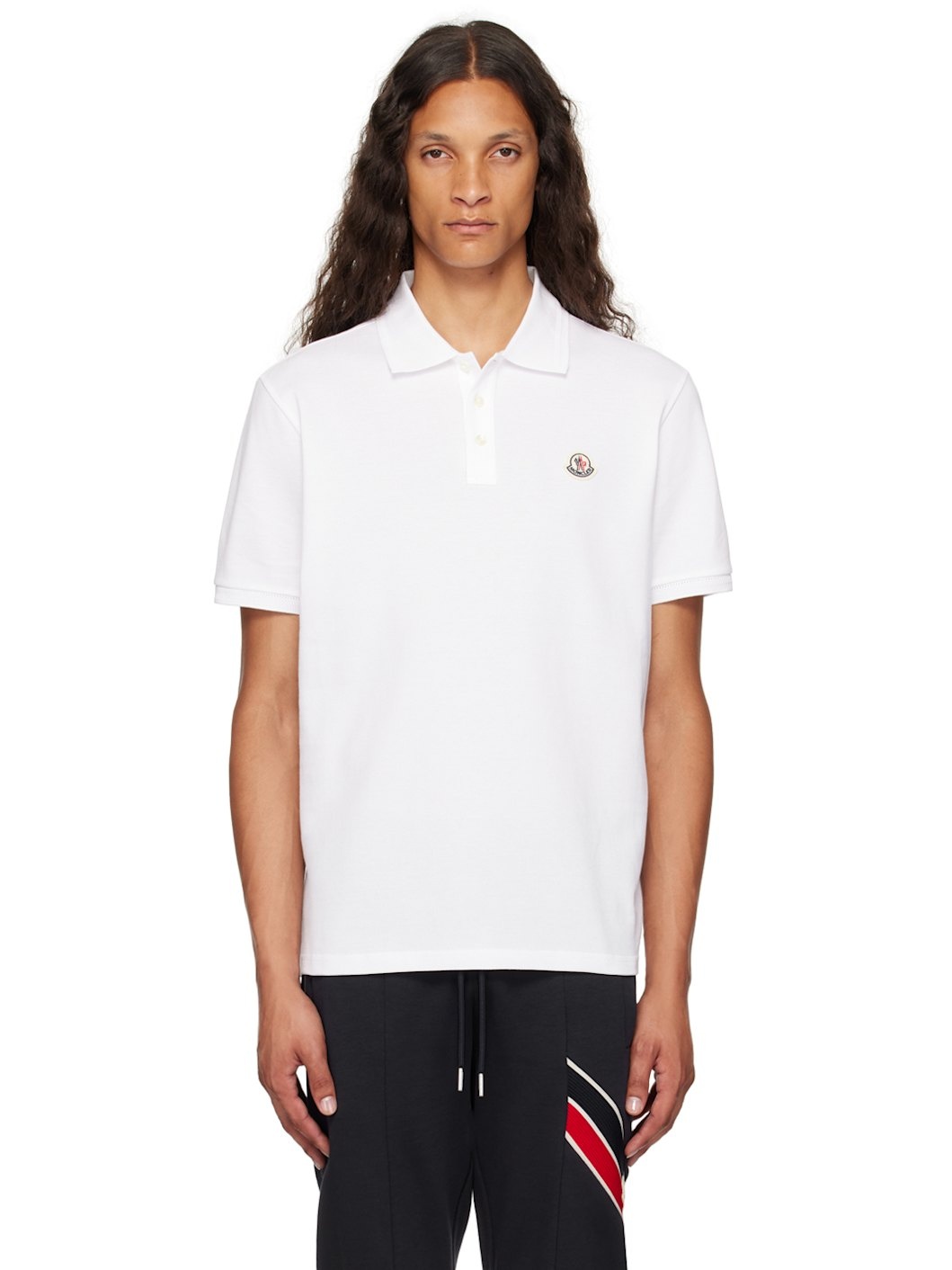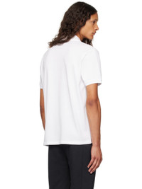 Cotton pique polo. · Chevron detailing at rib knit spread collar and cuffs · Three-button placket · Tricolor felted logo patch at chest Supplier color: White 100% cotton. Made in Turkey 242111M212021