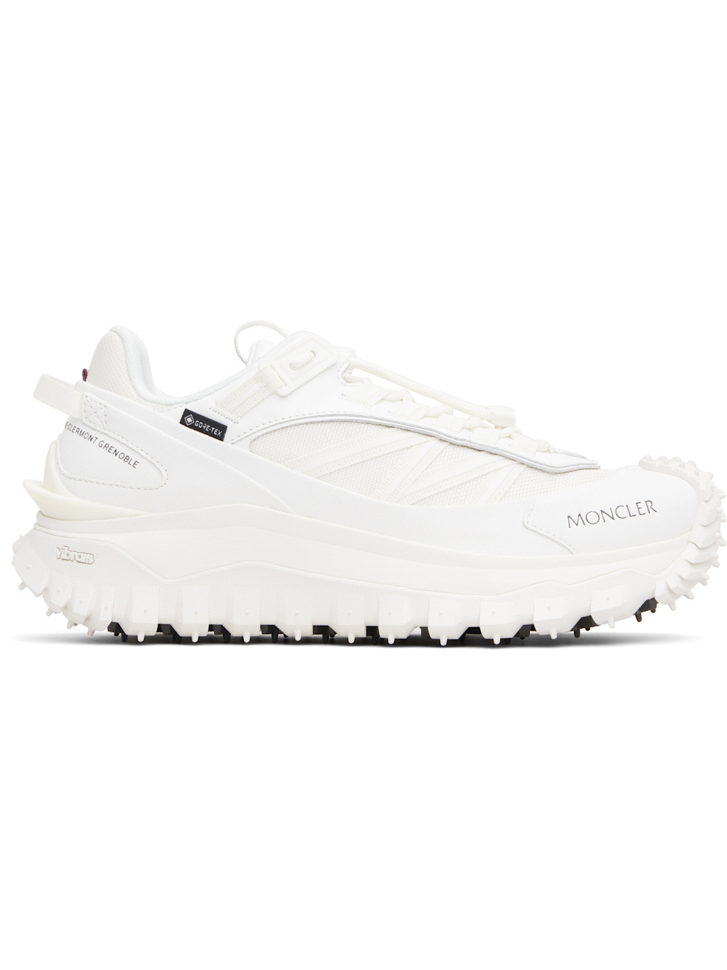 Low-top mesh, canvas, and buffed faux-leather sneakers. · Waterproof GORE-TEX™ membrane · Logo printed at toe · Cord-lock lace-up closure · Logo-bonded pull-loop at padded tongue · Padded collar · Webbing pull-loop at heel tab · Logo-embossed rubber trim at heel counter · Ortholite® insole · Foam rubber midsole · Treaded Vibram® Megagrip rubber sole Supplier color: White Upper: textile, synthetic. Sole: rubber. Made in Viet Nam 252111M237003