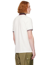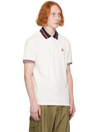 Cotton pique polo. · Striped rib knit spread collar and cuffs · Two-button placket · Felted logo patch at chest Supplier color: White 100% cotton. Made in Turkey 242111M212040