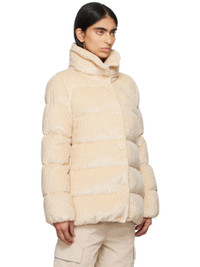 DIST-certified down-filled quilted viscose-blend corduroy jacket. Metallic thread detailing throughout. · Funnel neck · Press-stud closure · Zip pockets · Elasticized hem and cuffs · Felted logo patch at sleeve · Full longue saison lining Supplier color: Yellow Fill: 90% goose down, 10% goose feather. Body: 90% viscose, 5% polyamide, 5% metallized fiber. Lining: 100% polyamide. Made in Romania 242111F061065
