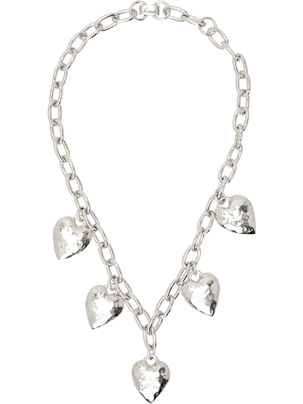 Cable chain necklace in silver-tone brass. · Graphic charms at length · Flip-clasp fastening · L15.5" Supplier color: White bronze Brass. Made in United States 252416F023003