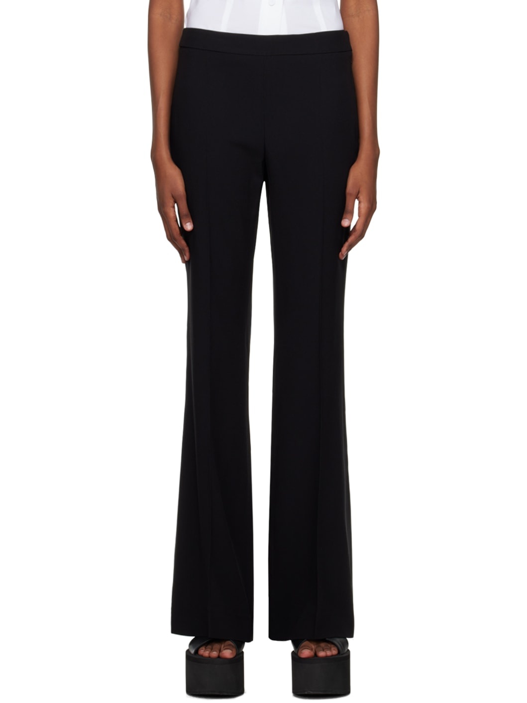 Flared acetate- and viscose-blend cady trousers. · High-rise · Central creases at front and back · Concealed zip closure at outseam Supplier color: Black 70% acetate, 30% viscose. Made in Italy 231720F087004