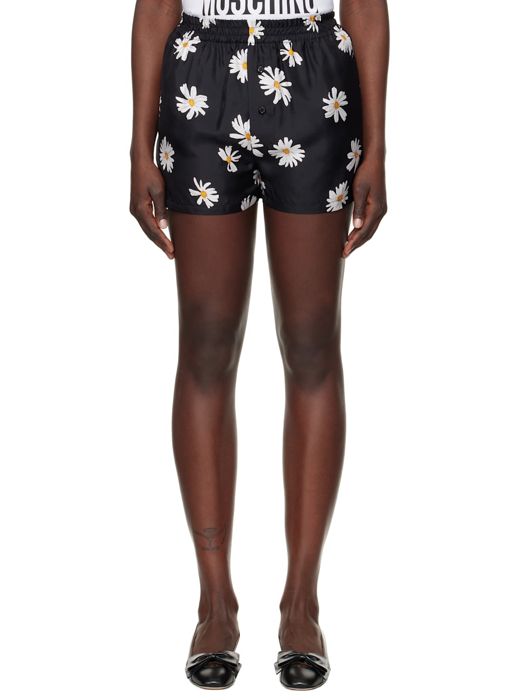 Black All Over Daisy Print Shorts