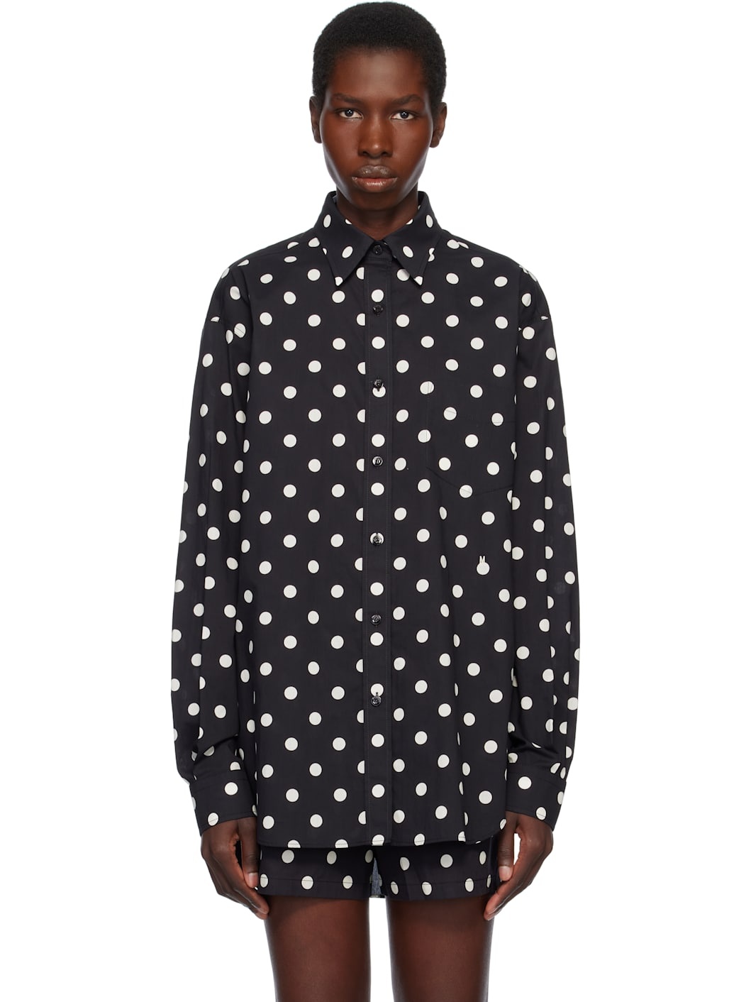Cotton voile shirt. Polka-dot pattern printed throughout. · Spread collar · Button closure · Patch pocket · Logo embroidered at front · Droptail hem · Pleated single-button barrel cuffs · Twin pleats at back yoke · Logo-engraved hardware Supplier color: Multi/Black 100% cotton. Made in Italy 251720F109008