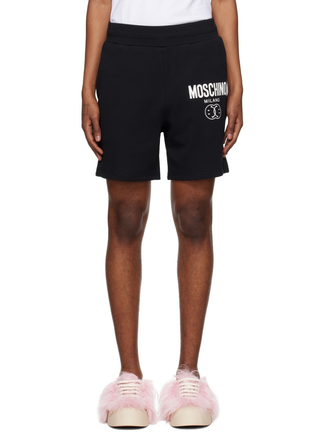 French terry shorts. · Concealed drawstring at rib knit waistband · Three-pocket styling · Logo graphic printed at leg Part of the Moschino Smiley® collection. Supplier color: Black 100% cotton. Made in Portugal 241720M193001