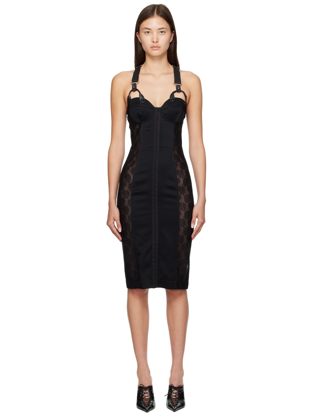 Stretch nylon mesh and acetate-blend satin dress. Jacquard floral pattern. · Paneled construction · Sweetheart neck · Underwire at quilted cups · Hook-eye closure · Detachable and adjustable harness-style shoulder straps · Zip fastening at back collar · Partial satin lining Supplier color: Black Body: 75% polyamide, 25% elastane. Body 2: 70% acetate, 30% viscose. Lining: 83% acetate, 17% silk. Made in Italy 232720F054001