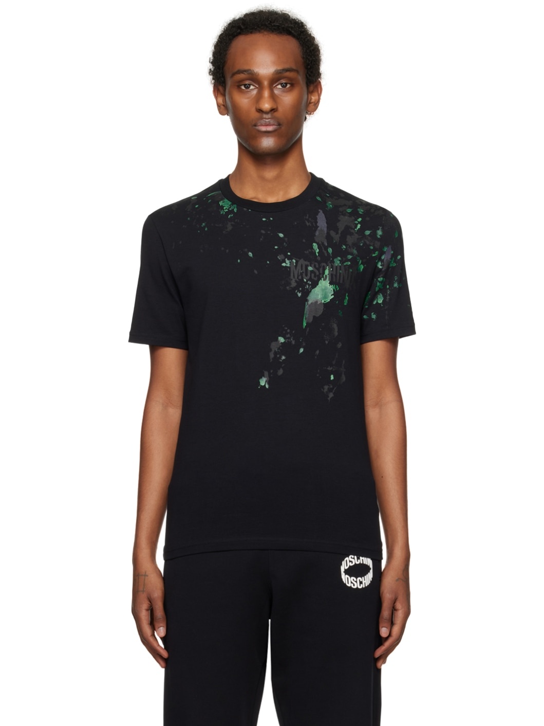 Stretch cotton T-shirt. Hand-painted splatter effect throughout. · Rib knit crewneck · Logo printed at chest Supplier color: Black 97% cotton, 3% elastane. Made in Portugal 241720M213013