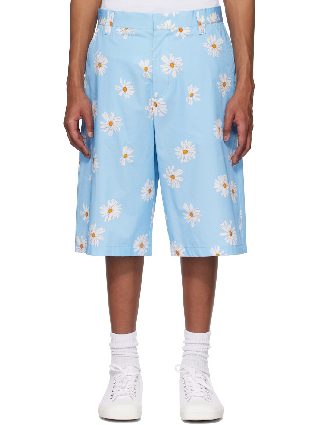 Cotton satin shorts. Graphic pattern printed throughout. · Belt loops · Four-pocket styling · Zip fly Supplier color: Sky blue 100% cotton. Made in Italy 251720M193000