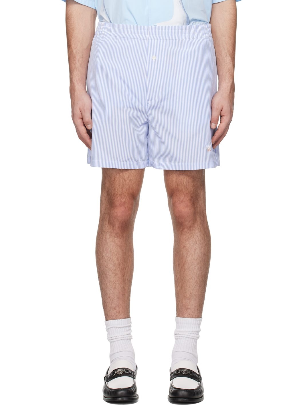 Loose-fit cotton poplin shorts. Stripes throughout. · Elasticized waistband · Three-pocket styling · Button fly · Graphic embroidered at front · Logo embroidered at back Supplier color: Multi light blue 100% cotton. Made in Italy 251720M193005