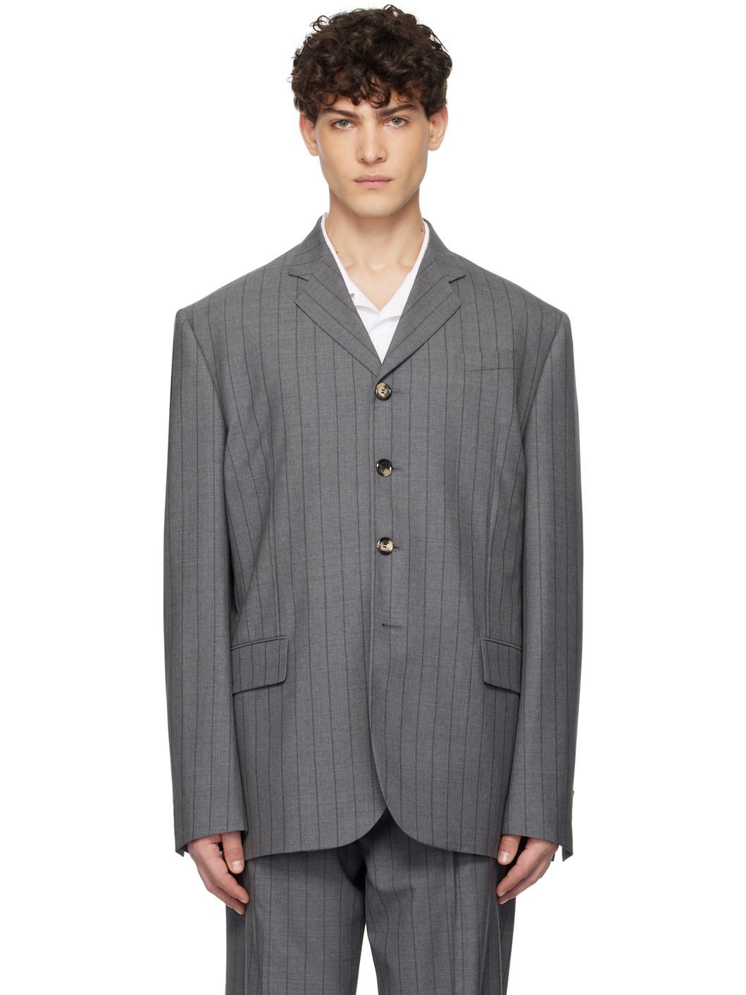 Gray Wool Pinstripe Blazer