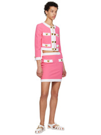 Stretch viscose crepe skirt. · High-rise · Graphic hardware at mock welt pockets · Concealed zip closure at side seam · Fully lined · Gold-tone hardware Supplier color: Pink 99% viscose, 1% elastane. Made in Italy 231720F090010