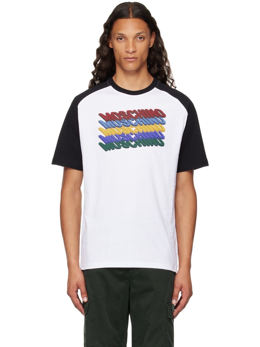 Cotton jersey T-shirt. · Rib knit crewneck · Logo graphic printed at front · Raglan sleeves Supplier color: Multi white 100% cotton. Made in Portugal 242720M213005