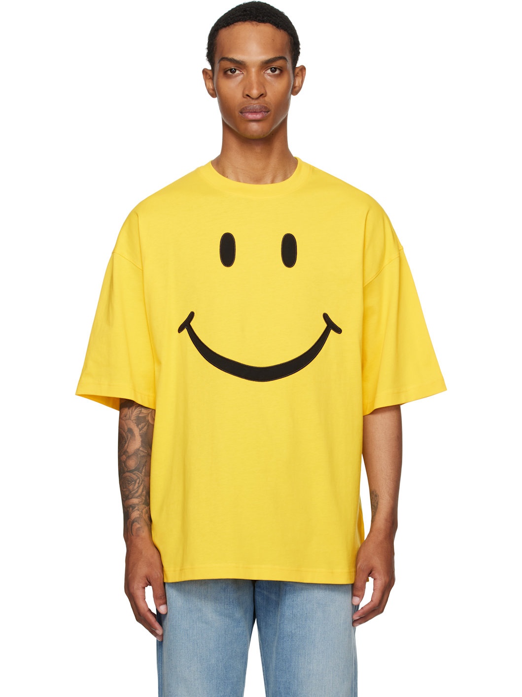 Cotton jersey T-shirt. · Rib-knit crewneck · Embroidered graphic patches at front · Dropped shoulders · Logo stitched at back Part of the Smiley® capsule. Supplier color: Multi Yellow 100% cotton. Made in Portugal 252720M213017