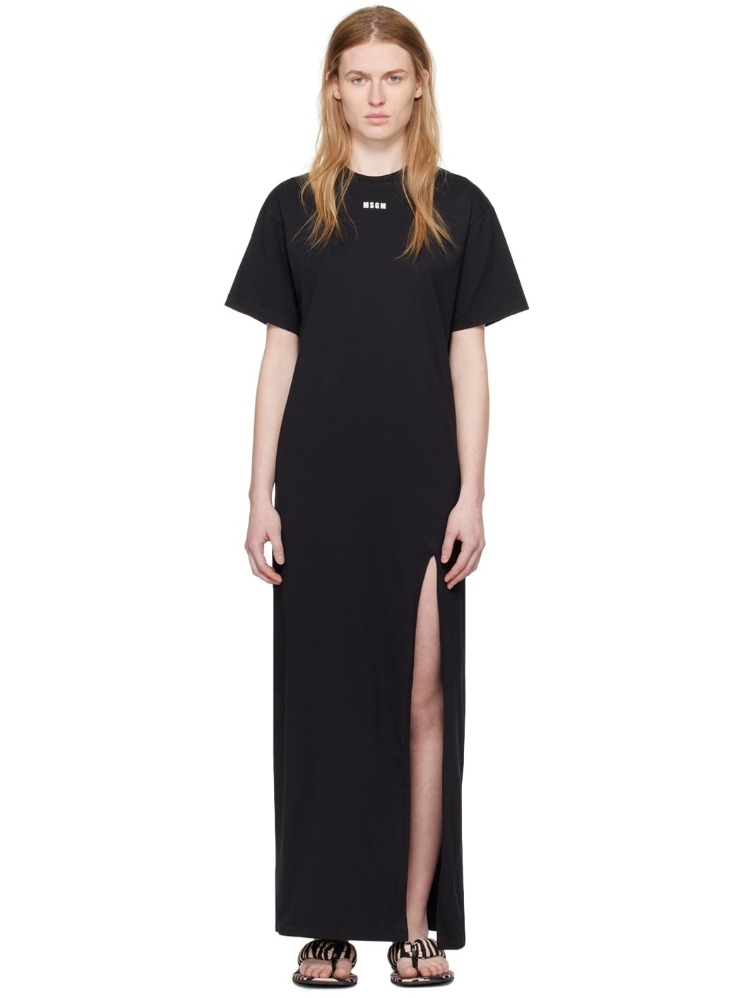 Cotton jersey T-shirt-style dress. · Rib knit crewneck · Logo printed at chest · Vent at front hem · Unlined Supplier color: Black 100% cotton. Made in Italy 241443F055018
