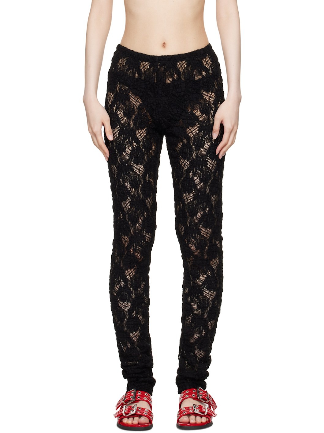 Semi-sheer stretch cotton- and nylon-blend lace leggings. Jacquard floral pattern throughout. · High-rise · Elasticized waistband Supplier color: Black 74% cotton, 22% polyamide, 4% elastane. Made in Italy 242443F085000