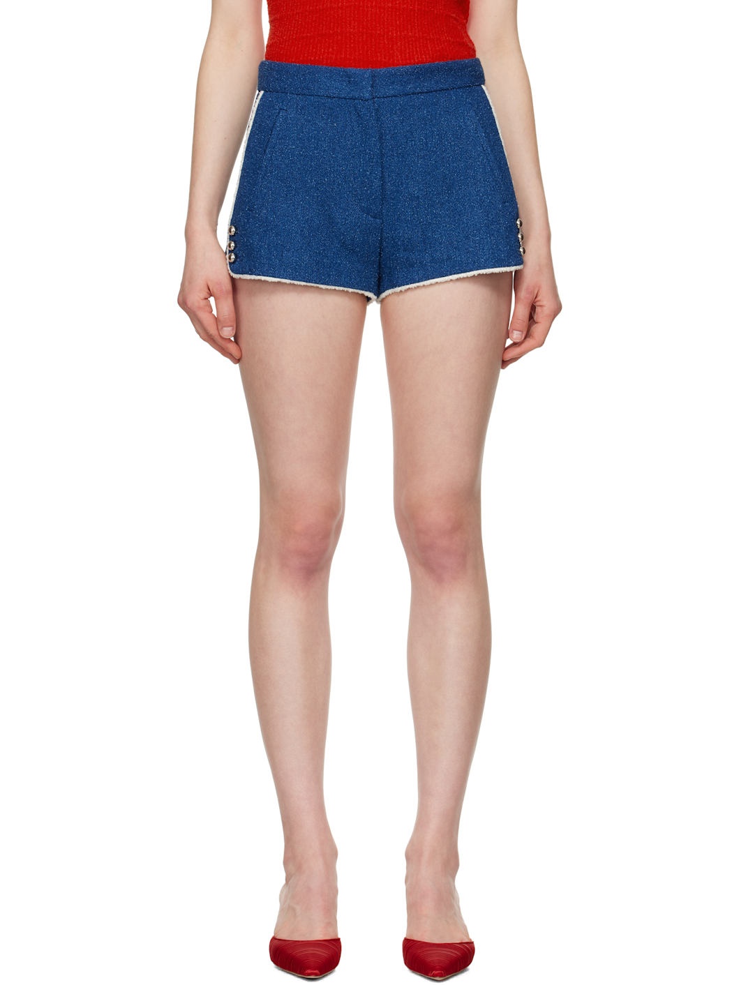 Blue boucle tweed denim shorts