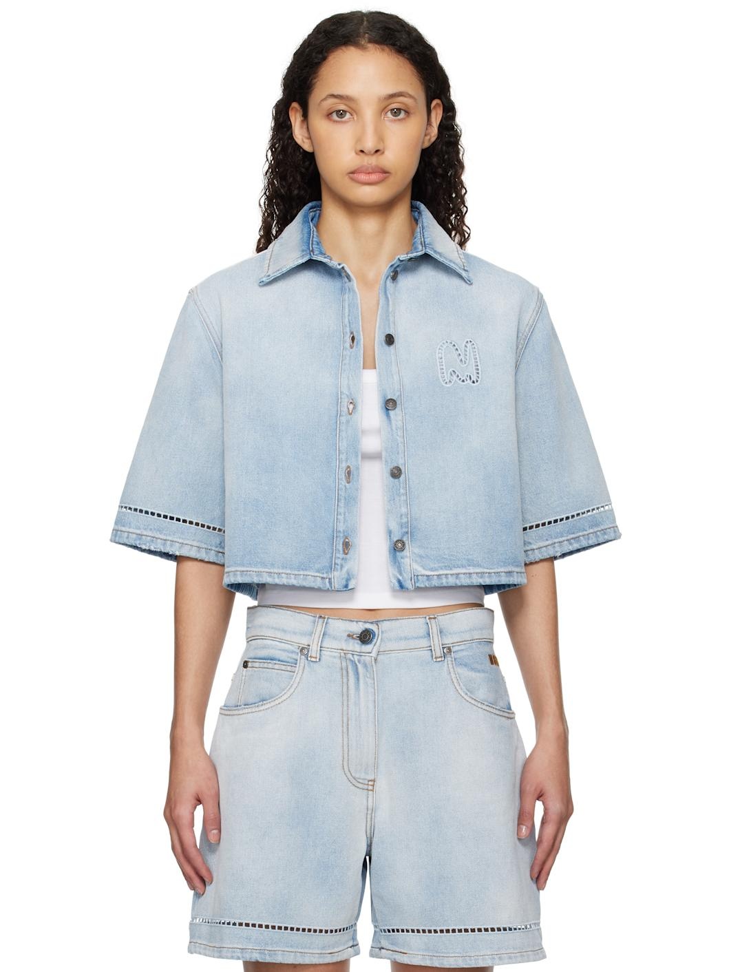 Blue Cropped Denim Shirt