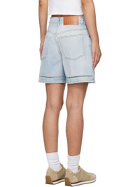 Garment-washed non-stretch denim shorts. Fading and subtle distressing throughout. · Belt loops · Five-pocket styling · Zip fly · Logo embroidered at front · Broderie anglaise detailing at hem · Logo patch at back waistband · Contrast stitching in brown Supplier color: Light blue 100% cotton. Made in Italy 251443F088000