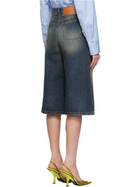 Indigo-dyed non-stretch denim shorts. Fading and subtle distressing throughout. · Belt loops · Five-pocket styling · Zip-fly · Logo embroidered at front pocket · Leather logo patch at back waistband Supplier color: Blue 100% cotton. Made in Italy 242443F088001
