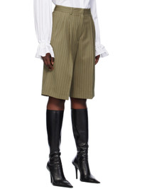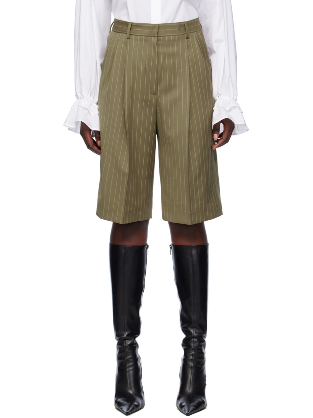 Virgin wool-blend twill shorts. Pinstripes throughout. · Belt loops · Three-pocket styling · Zip-fly · Pleats at waist · Creased legs Supplier color: Military Body: 99% virgin wool, 1% polyester. Lining: 100% polyester. Made in Italy 241443F088003