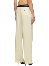 Wide-leg stretch virgin wool crepe trousers. · Jacquard logo at elasticized waistband · Three-pocket styling · Pleats at front · Central creases at front and back · Zip closure at outseam · Logo-engraved gunmetal-tone hardware Supplier color: Off white Body: 96% virgin wool, 4% elastane. Lining: 100% polyester. Made in Italy 241443F087005