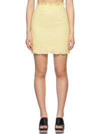Cotton poplin short skirt in yellow. Ruching throughout. · High-rise · Elasticized waistband · Full jersey lining Supplier color: Mimosa 100% cotton.