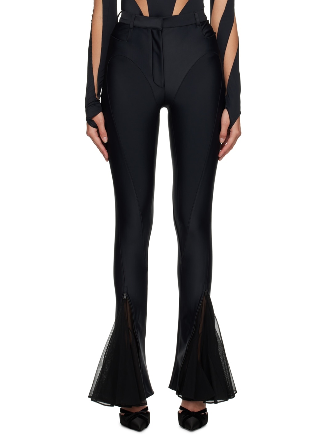 Stretch nylon bonded jersey trousers. · Paneled construction · Belt loops · Two-pocket styling · Zip-fly · Zip expansion panel at flared cuffs · Stretch nylon tulle trim at cuffs Supplier color: Black Body 1: 78% polyamide, 22% elastane. Body 2: 83% polyamide, 17% elastane. Made in Portugal 232345F087010
