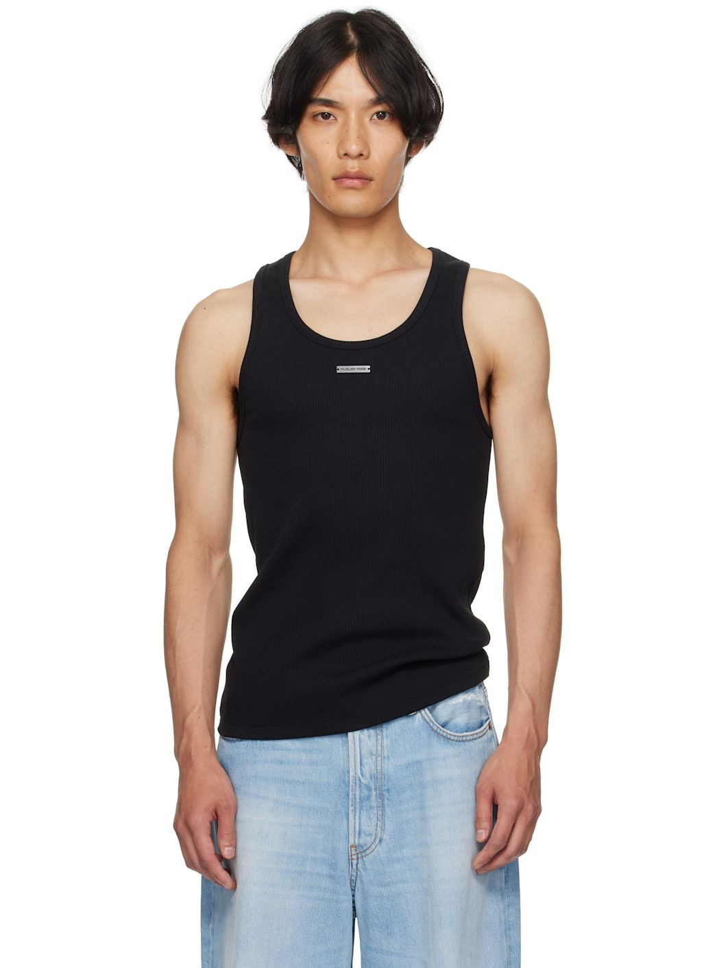 Stretch organic cotton ribbed jersey tank top. · Scoop neck · Logo plaque at chest Supplier color: Black 98% organic cotton, 2% elastane. Made in Portugal 252345M214004